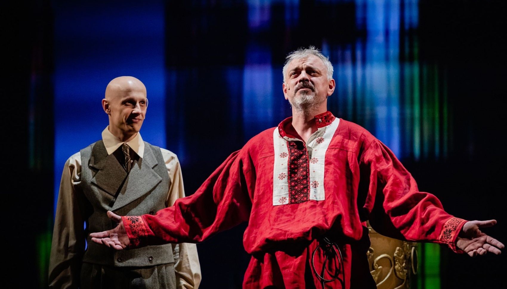 Марина Брусникина: «В нашем спектакле текст — всегда не первый план, он просто сопровождает игровую ситуацию. Шмелёв переполнен сюжетами, юмором, буйным ритмом, которые мы и «раскапываем» за литературой. Для меня эта история о том, что очень точно сформулировал философ Николай Бердяев, — о необходимости понимания прошлого для определения «контуров будущего».